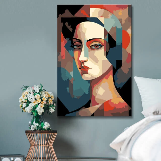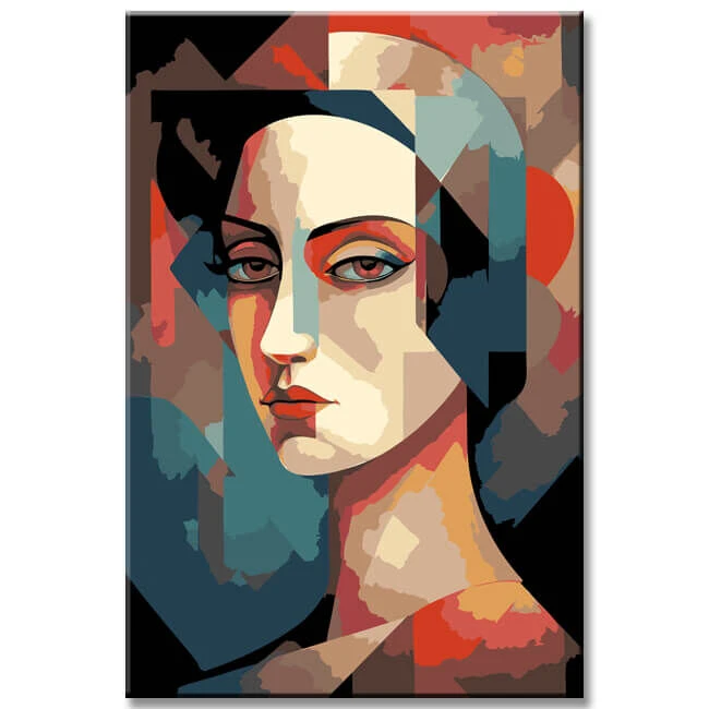 Kreatives Ausmalbild eines stilvollen Frauengesichts im einzigartigen Stil von Tarsila do Amaral – Malen nach Zahlen