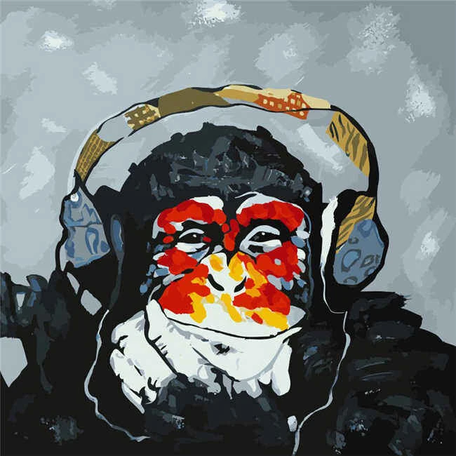 Malen nach Zahlen Affe hört Musik Moderne Tierkunst