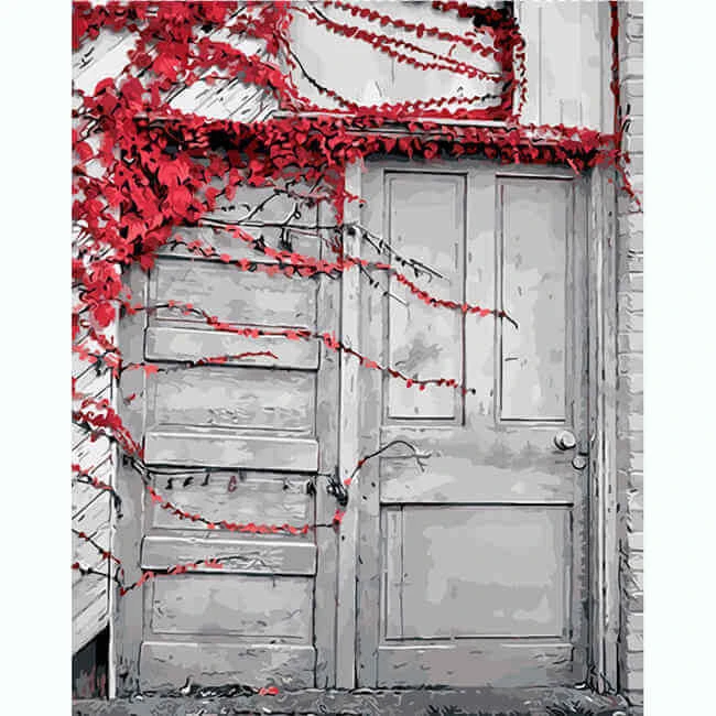 Malen nach Zahlen Alte Tür mit Blütenranken