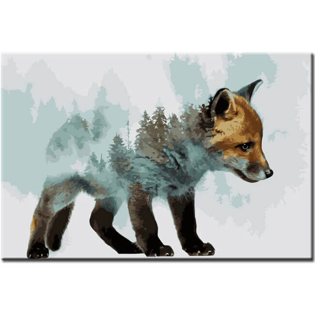 Malen nach Zahlen Kunst Tier Baby Fuchs mit vereistem Körper und Bäumen