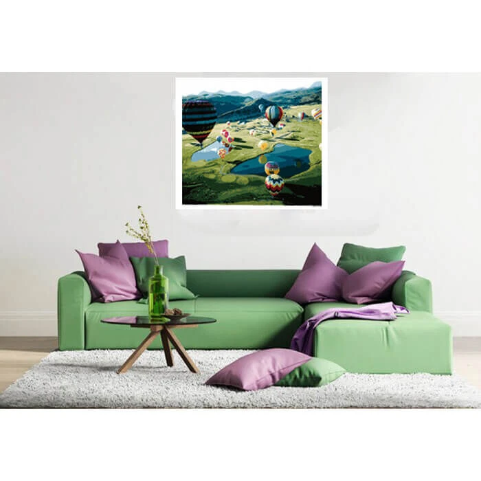 Malen nach Zahlen Ballonflug über Berge Seen und Wiesen