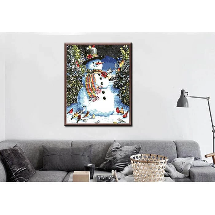 Malen nach Zahlen Bilder Schneemann mit Vögeln