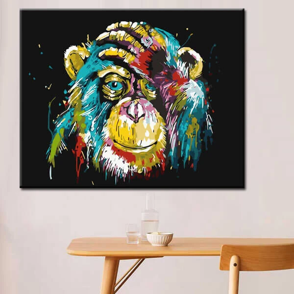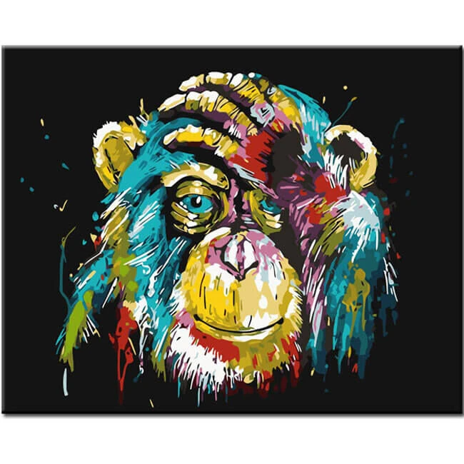 Malen nach Zahlen Bunter Affe hält seine Hand auf dem Kopf