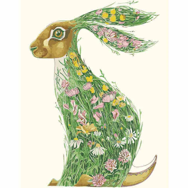 Malen nach Zahlen Bunter Feldhase im grünen Blumenkleid