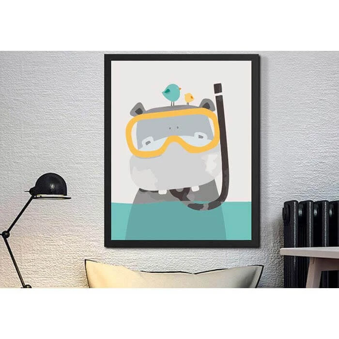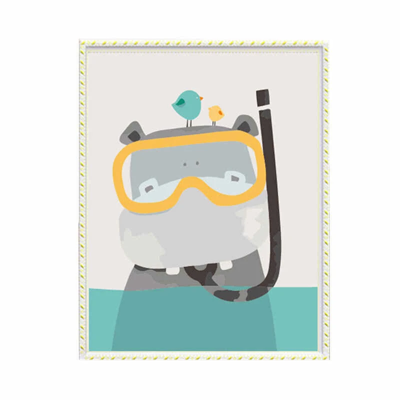 Malen nach Zahlen Comic Nilpferd mit Taucherbrille