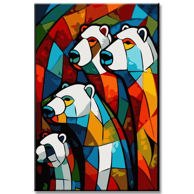 Malen nach Zahlen: Eisbärfamilie im Picasso-Stil