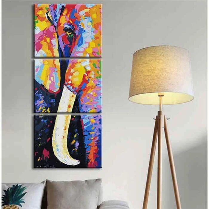 Malen nach Zahlen Elefant Stoßzahn Moderne Tierkunst – 3-teilig (Triptychon)