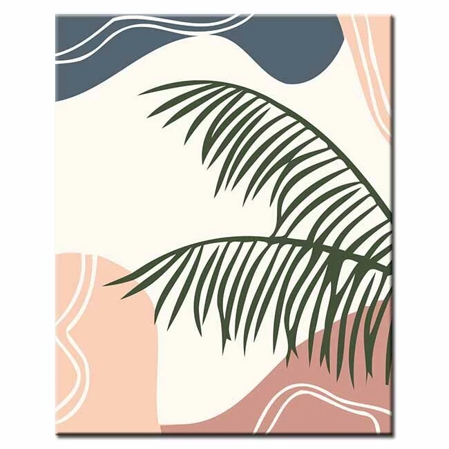 Malen nach Zahlen Kunst Minimalismus Farbige Wolken mit zwei Palmenblätter