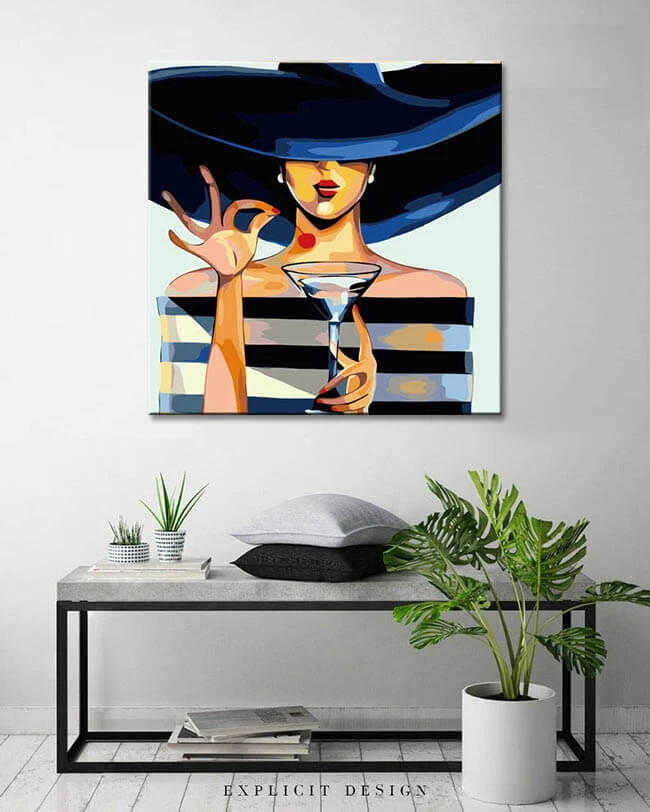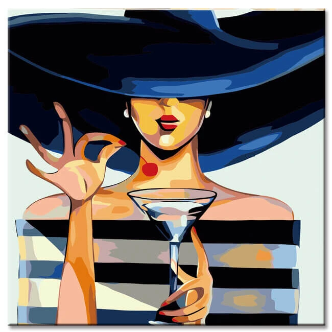 Malen nach Zahlen Frau mit Hut und Weinglas Versand aus DE