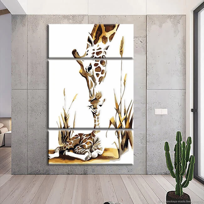 Malen nach Zahlen Giraffenmutter und Kind 3-teilig Versand aus DE