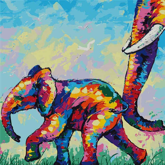 Malen nach Zahlen Kleiner Elefant mit Mutter Moderne Tierkunst