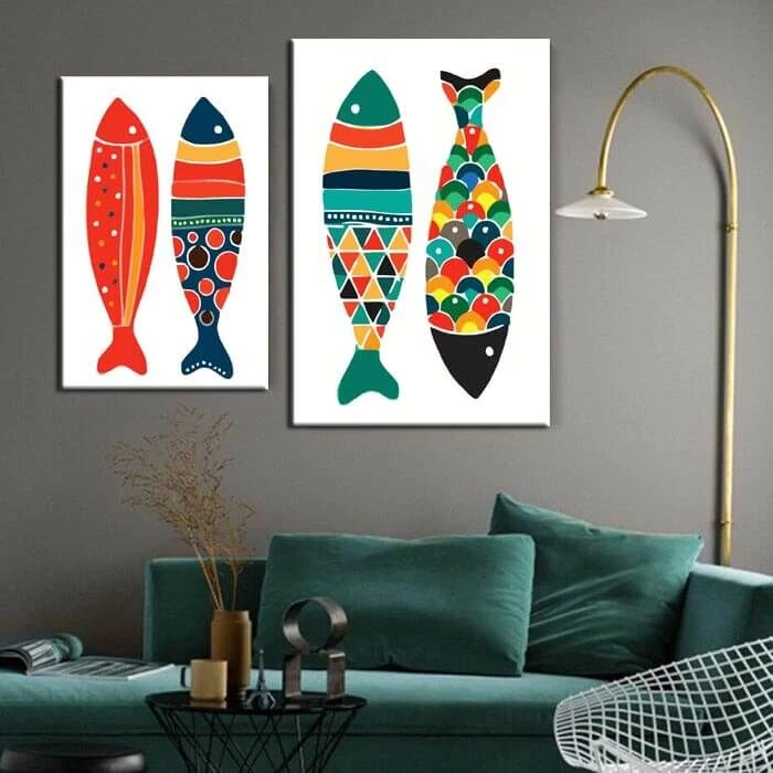 Malen nach Zahlen Kunst Zwei Bunte Fische liegen nebeneinander Kopf an Kopf