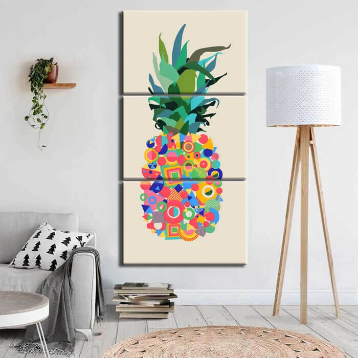 Malen nach Zahlen Kunst Abstrakt Ananas mit bunten Punkten 3-teilig