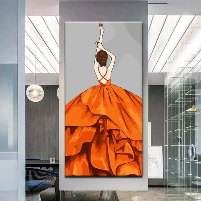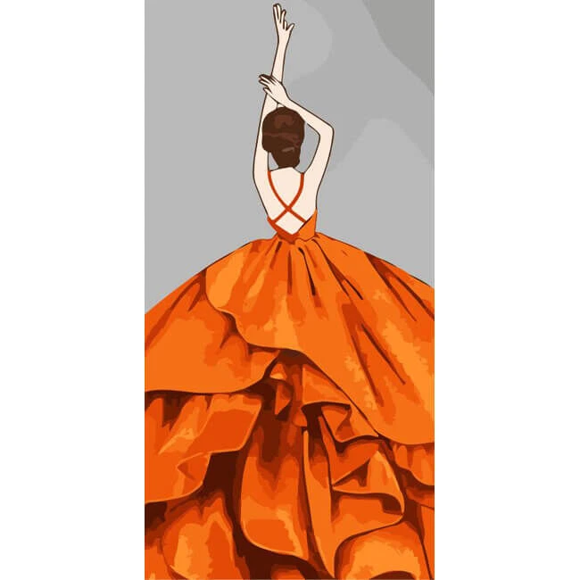 Malen nach Zahlen Kunst Frau mit großem Orangenen Rock