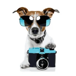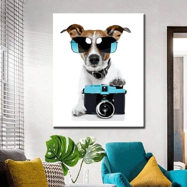 Malen nach Zahlen Kunst Hund mit Brille und Kamera