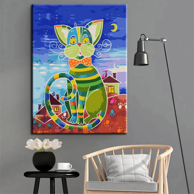 Malen nach Zahlen Kunst Illustration bunte große Katze