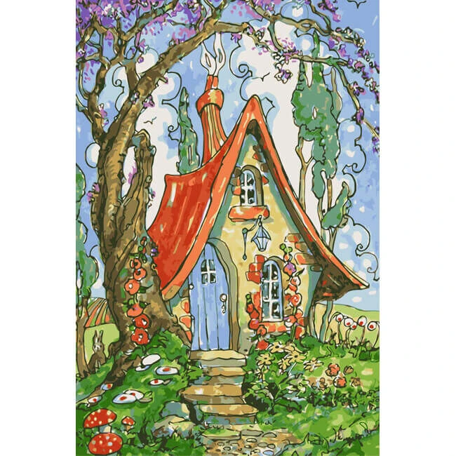 Malen nach Zahlen Kunst Illustration Haus mit Weg im Sommer