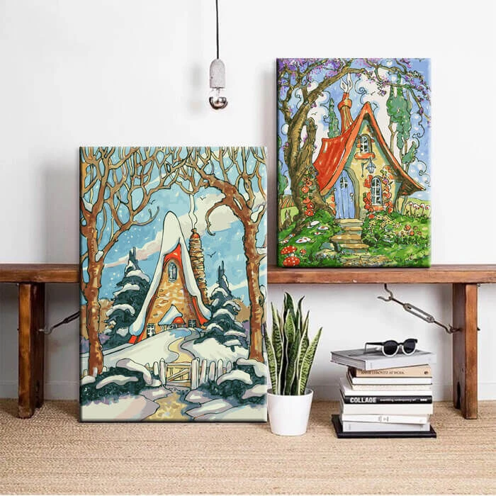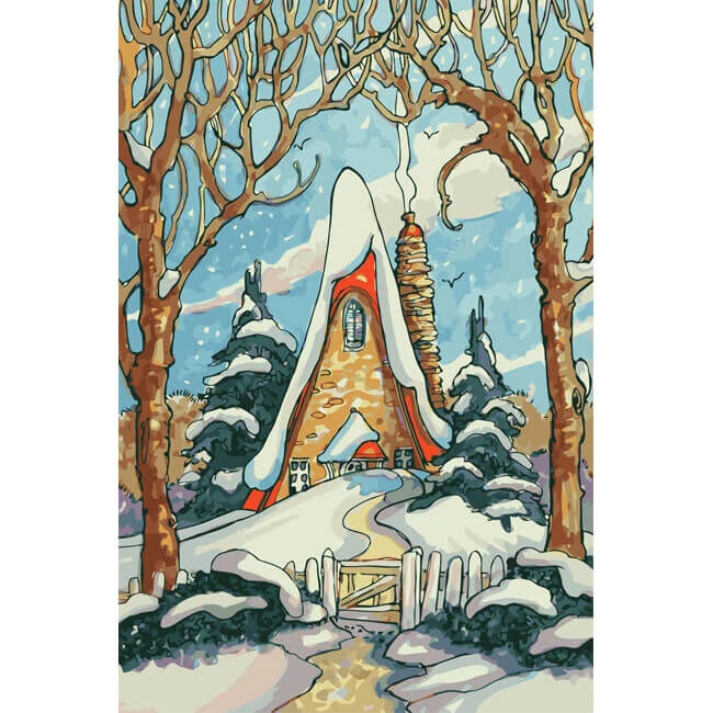 Malen nach Zahlen Kunst Illustration Schneebedecktes Haus