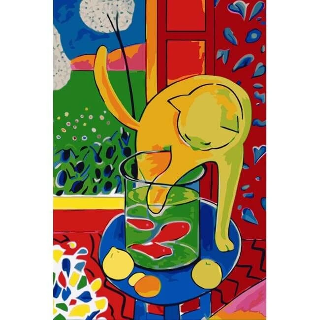 Malen nach Zahlen Kunst Katze und Goldfischglas