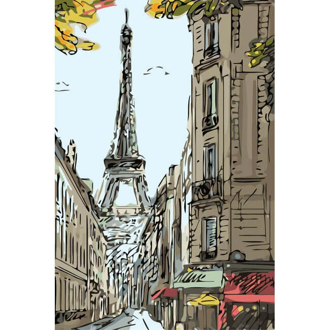 Malen nach Zahlen Kunst Landschaft Blick zum Eiffelturm in Paris