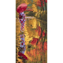 Malen nach Zahlen Kunst Lifestyle Frau steht mit Schirm am Ufer