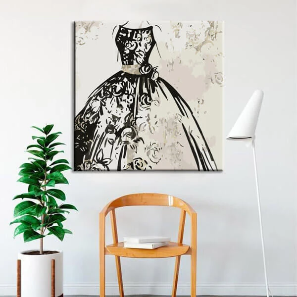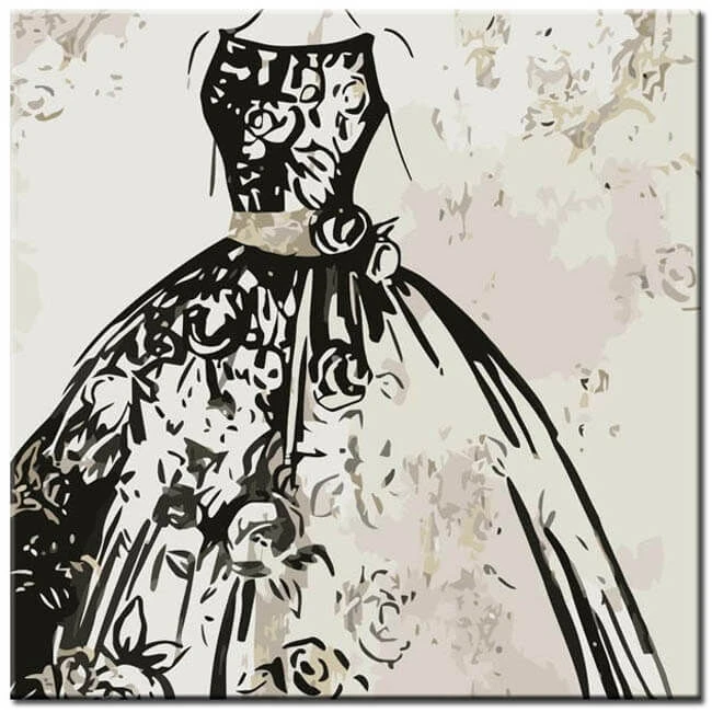 Malen nach Zahlen Kunst Lifestyle schwarz-weisses Kleid mit Blümchen