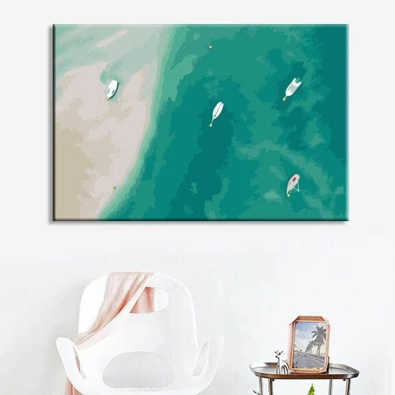 Malen nach Zahlen Kunst Natur Boote liegen im Meer und Strand fest