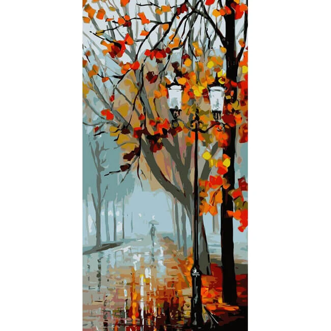 Malen nach Zahlen Kunst Natur Herbstbaum Regen Laternen