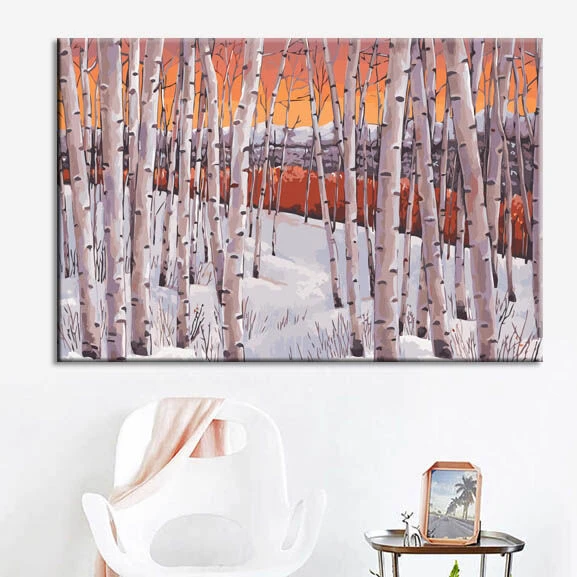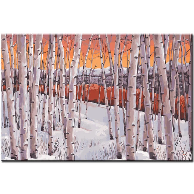 Malen nach Zahlen Kunst Natur kahle Bäume in Winterlandschaft