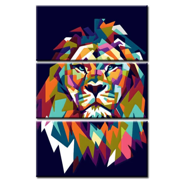 Malen nach Zahlen Kunst Tier buntes Löwensgesicht auf dunklem Hintergrund 3-teilig