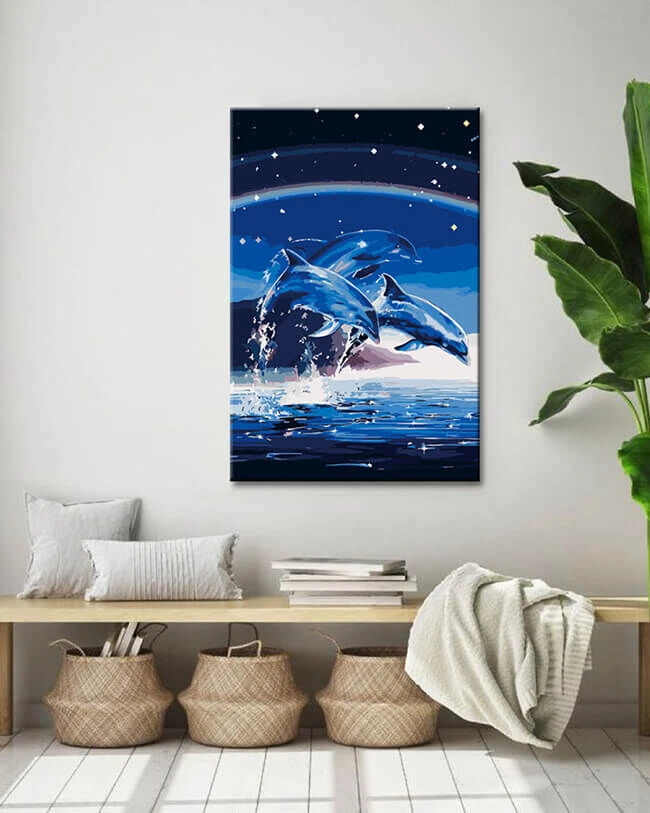 Malen nach Zahlen Kunst Tier Delfin Gruppe bei Nacht