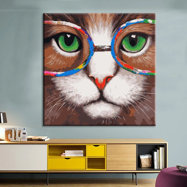 Malen nach Zahlen Kunst Tier Katze mit bunter Brille