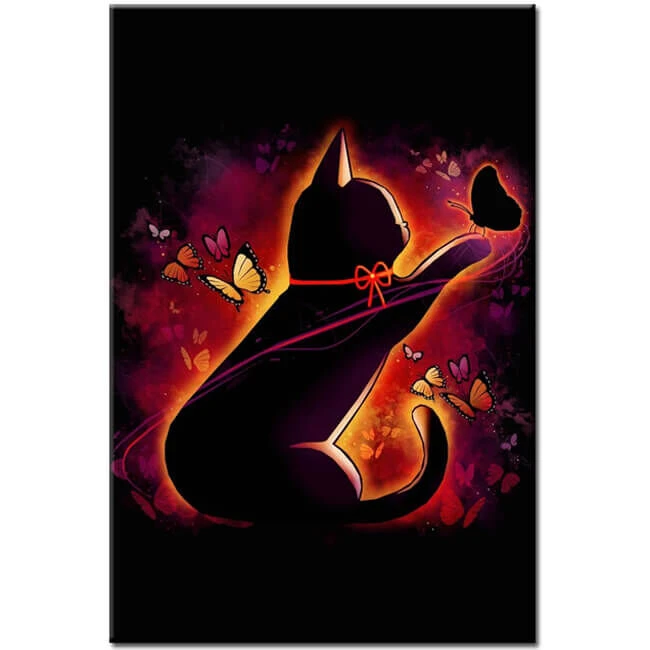Malen nach Zahlen Kunst Tier Katze spielt mit Schmetterlingen