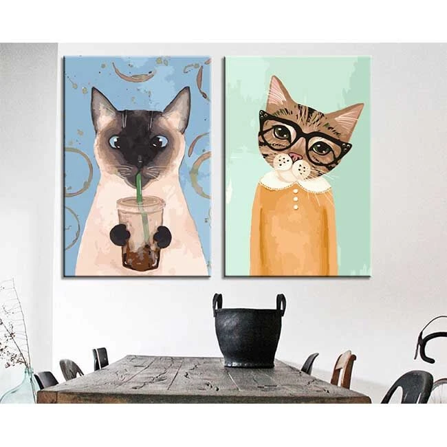 Malen nach Zahlen Kunst Tier Katze trinkt aus Strohhalm