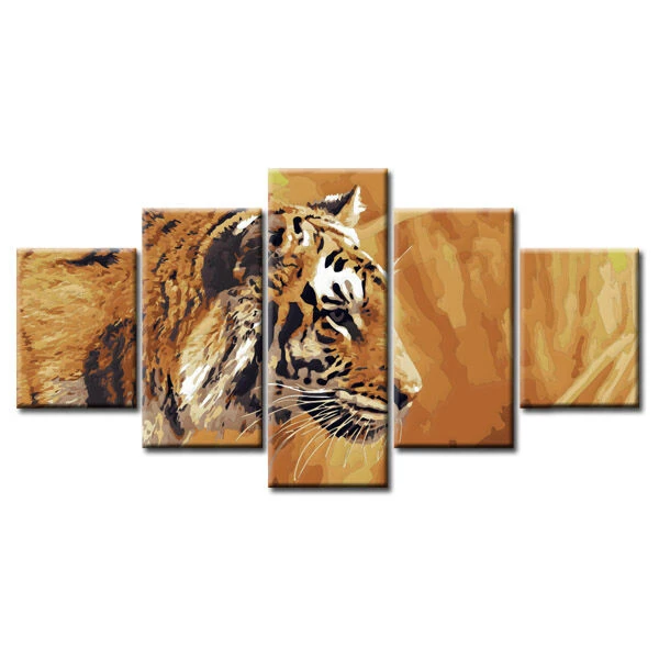 Malen nach Zahlen Kunst Tier Tiger in der Savanne 5-teilig