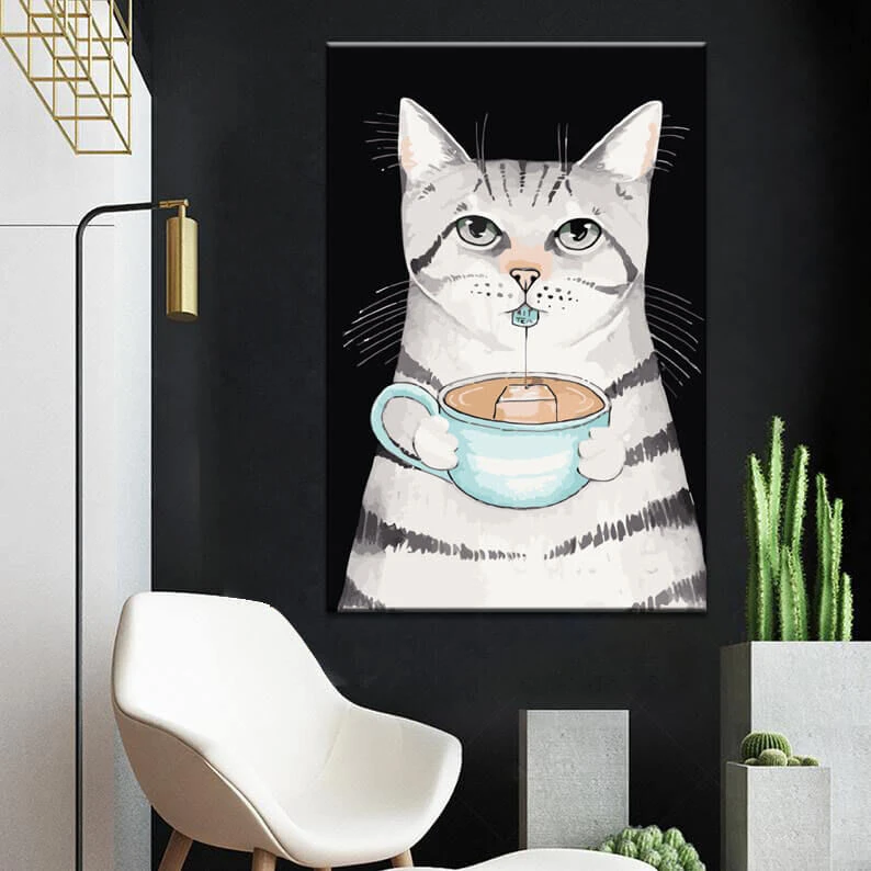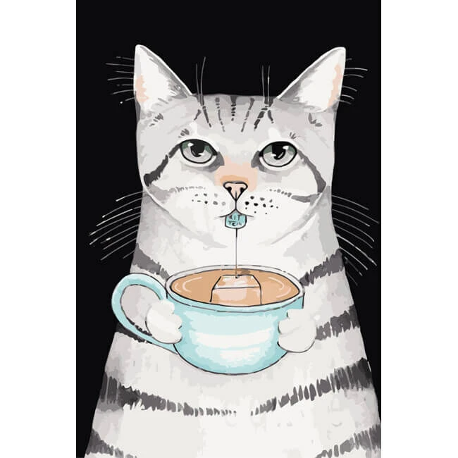 Malen nach Zahlen Kunst Tier weiße Katze mit grauen Streifen