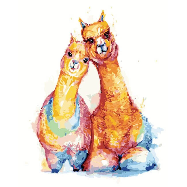 Malen nach Zahlen Kunst Tier zwei schmusende Alpakas