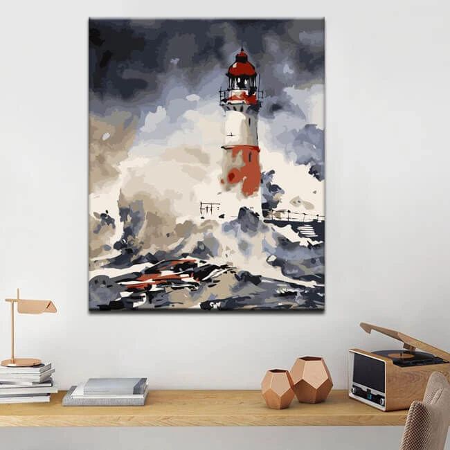 Malen nach Zahlen Leuchtturm in Wellen Versand aus DE