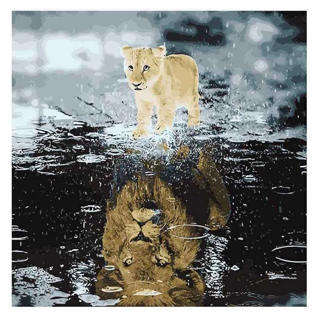 Malen nach Zahlen Löwe Spiegelung Kunst