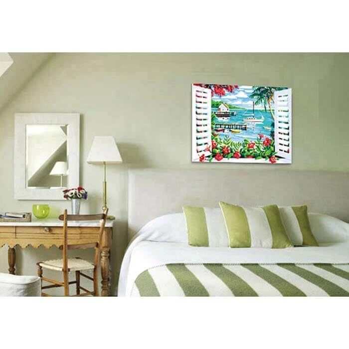 Malen nach Zahlen Meerblick durch offenes Fenster