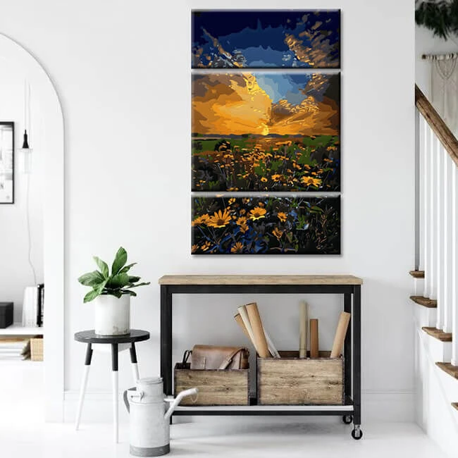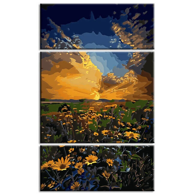 Malen nach Zahlen Sonnenblumen bei Sonnenuntergang 3-teilig Versand aus DE