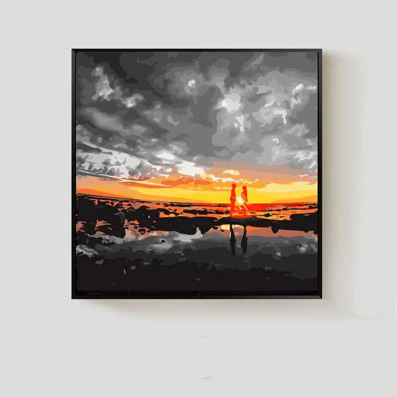 Malen nach Zahlen Sonnenuntergang Paar am Meer