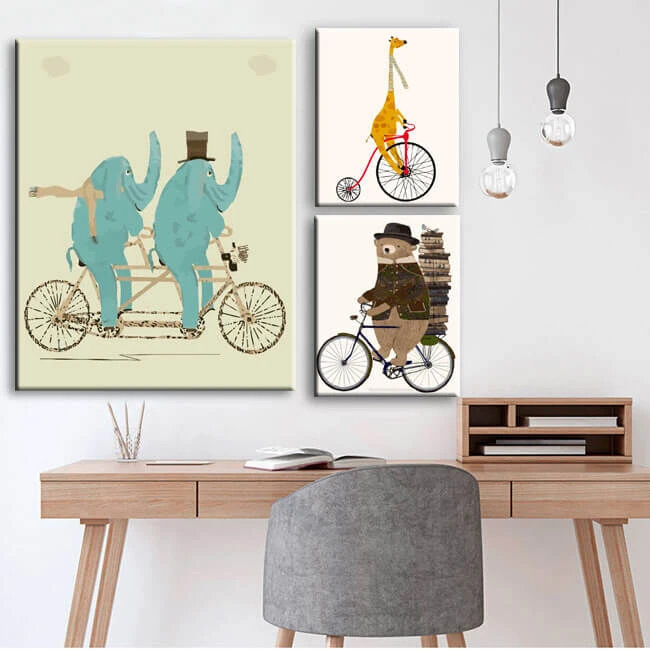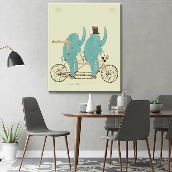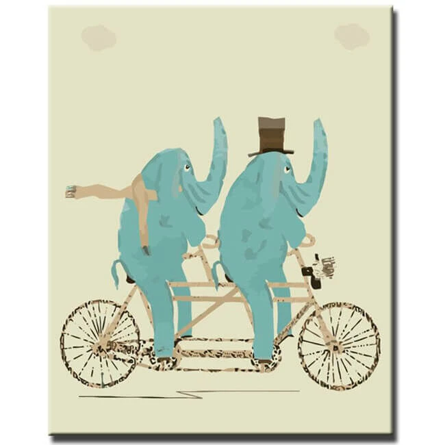 Malen nach Zahlen Tiere 2 Elefanten auf dem Fahrrad