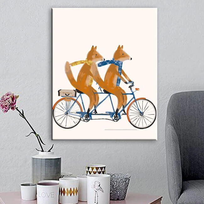 Malen nach Zahlen Tiere Zwei Füchse auf dem Fahrrad