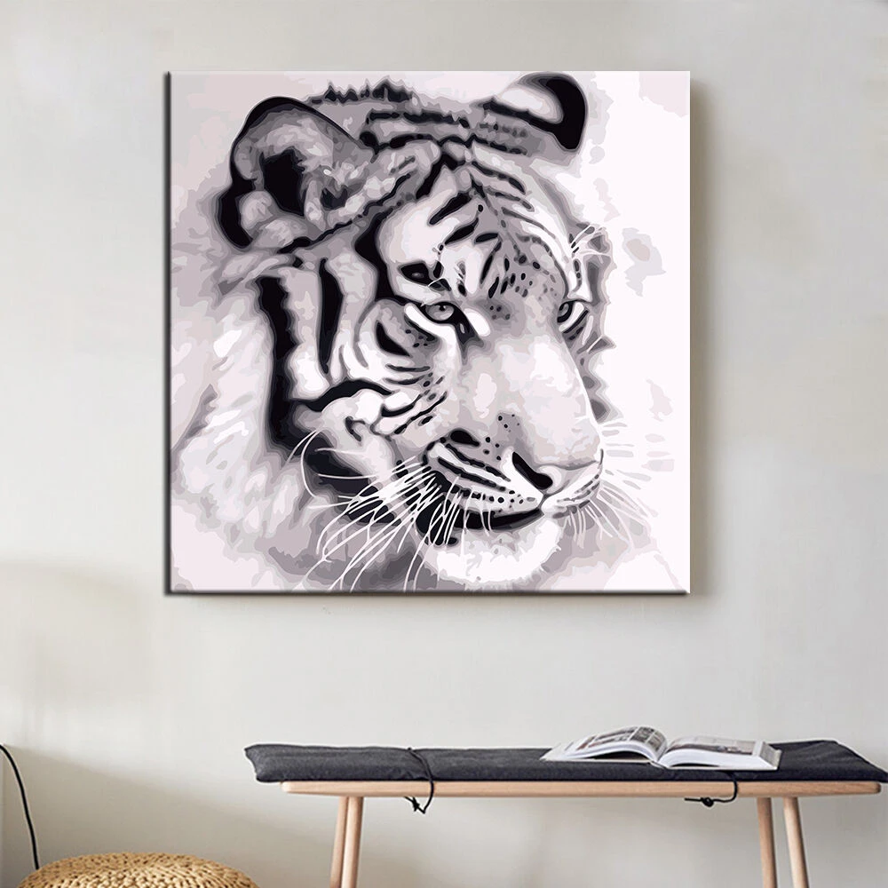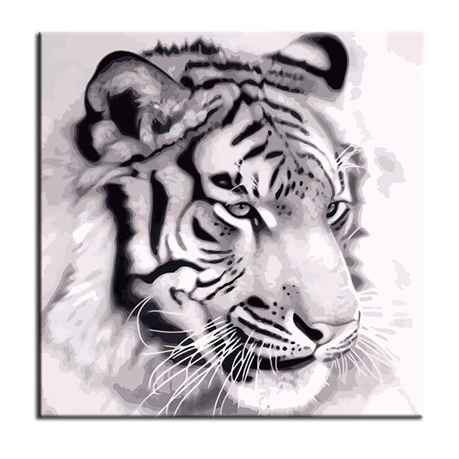 Malen nach Zahlen Tiger Portrait schwarz-weiß
