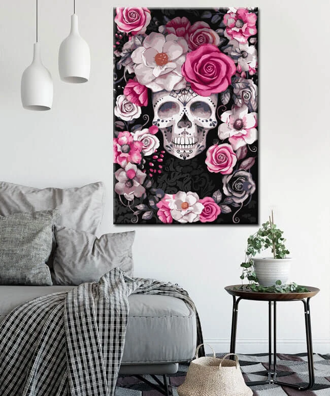 Malen nach Zahlen Totenkopf mit Rosen Versand aus DE